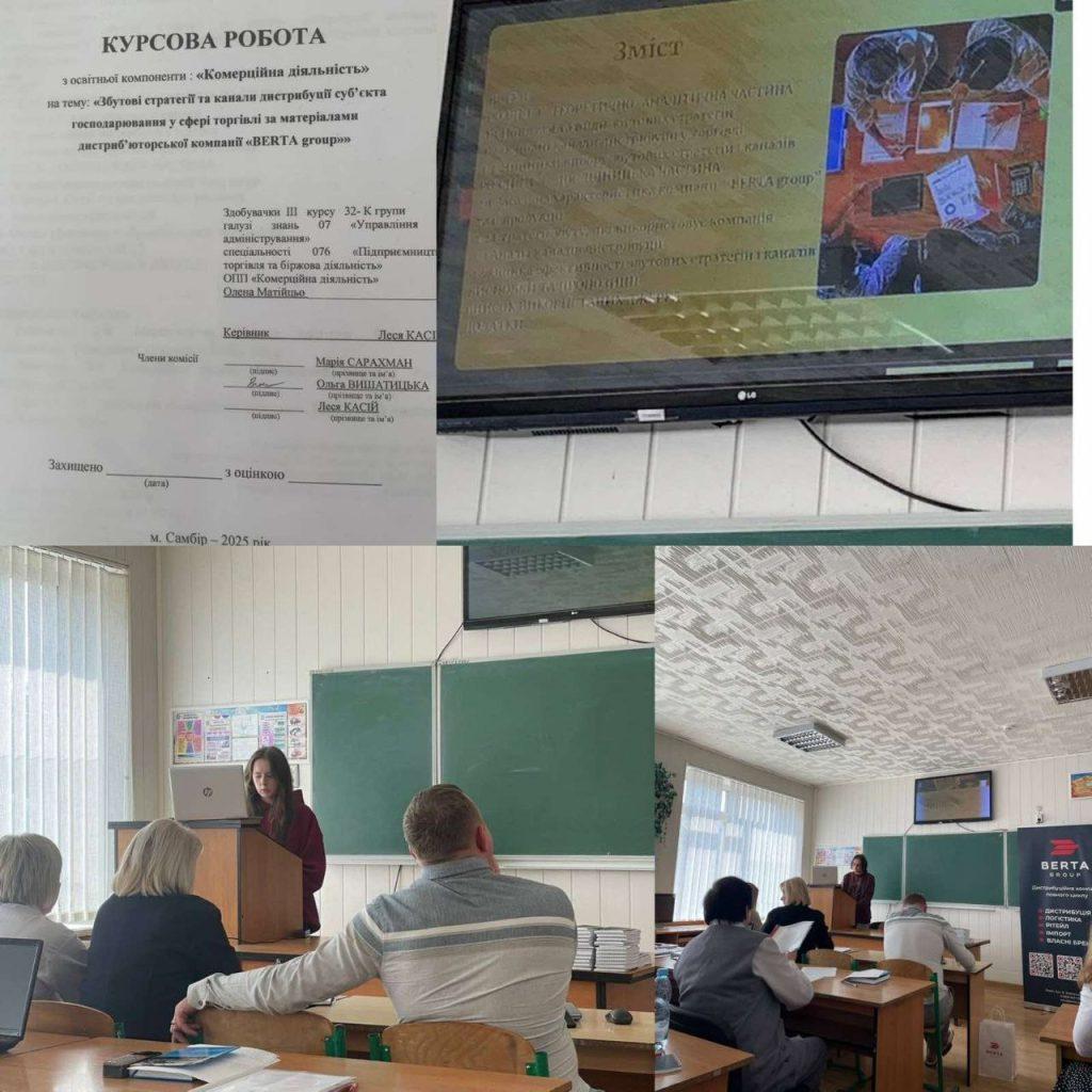 27 березня відбувся захист курсових робіт з освітньої компоненти “Комерційна діяльність” здобувачів освіти Самбірського фахового коледжу економіки та інформаційних технологій спеціальності 076 «Підприємництво, торгівля та біржова діяльність”. Студенти зробили ще один крок до професійного майбутнього! Захист курсових – це завжди хвилюючий, але водночас цікавий процес, адже кожен мав можливість продемонструвати свої знання, дослідження та власний підхід до обраної теми.