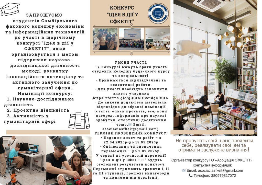 Самбірський фаховий коледж економіки та інформаційних технологій відзначив особливий день — урочисту академію з нагоди вручення нагород конкурсу “Ідея в дії у СФКЕТІТ”🎊