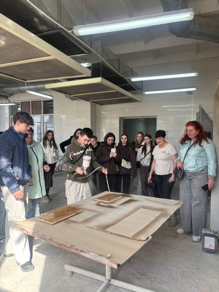 У межах гурткової роботи з освітніх компонент «Бухгалтерський облік» та «Економічний аналіз» (Надія ШЛАПАК та Людмила ДУТКО) здобувачі освіти груп 25е, 22к та 35е спеціальностей «Економіка», «Підприємництво та торгівля» Самбірського фахового коледжу економіки та інформаційних технологій здійснили навчально-пізнавальну екскурсію в центральний офіс торговельної мережі ТзОВ «Чумак» в Нижанковичах. Випускниця коледжу-менеджер Ірина ЯЦИНА розповіла студентам про основні етапи діяльності торговельної компанії:закупівлю товарів,формування асортименту,організацію продажів,контроль за рухом товарів і фінансовими результатами. Студенти дізналися про облік товарних запасів, оформлення первинних документів, контроль за витратами та як формується фінансова звітність. Здобувачі освіти відвідали меблеву фабрику, яка спеціалізується на виготовленні меблів на замовлення та виробництві іконостасів для церков. Під час відвідування начальник виробництва Роман ГИК ознайомив з технологічним процесом виробництва меблів:від розробки дизайну та підготовки матеріалів до виготовлення готових виробів. Мали можливість особисто долучитися до виробничого процесу-фарбуванню меблів. Навчальна екскурсія стала важливою складовою практичної підготовки студентів. Вона сприяла кращому розумінню організації бухгалтерського обліку та економічного аналізу на підприємствах різних галузей-торговельної та виробничої. Особливо вдячні співвласнику ТзОВ «Чумак» Ігорю ГАРАСЬ за організацію екскурсії,змістовну розповідь,теплий прийом та увагу до наших студентів.Такі зустрічі мотивують молодь до професійного розвитку та допомагають краще зрозуміти особливості майбутньої професії.