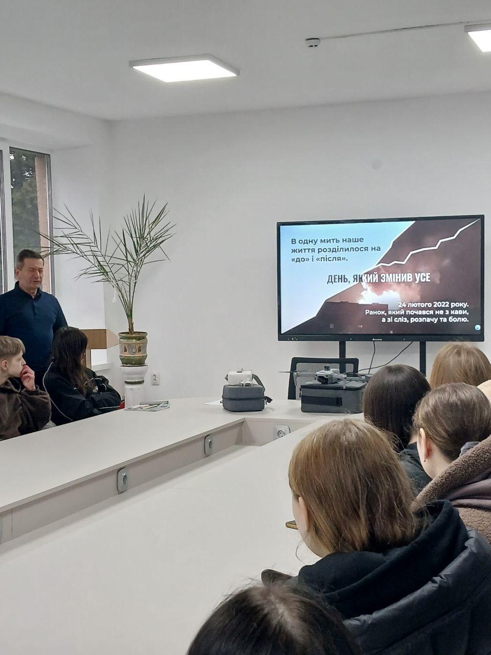 Пам’ять це те, що живе в серці, це те – чим живе душа. Пам’ять – це те, що залишається нам попри втрати… У четверті роковини повномаштабної війни у Самбірському фаховому коледжі економіки та інформаційних технологій було проведено тематичну годину для студентів перших курсів. Викладач предмета “Захист України” Янчак Т. В. зробив акцент на об’єднанні українців для привернення уваги світової громадськості до війни.