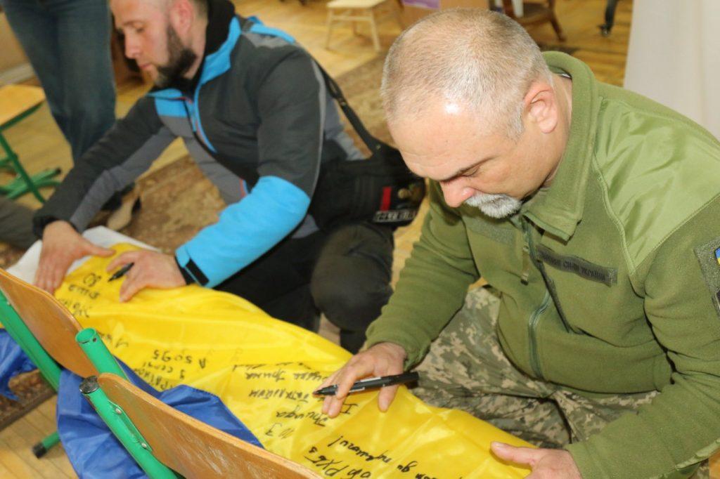 На знак єдності та віри в майбутнє ветерани залишили свої підписи на державному прапорі.