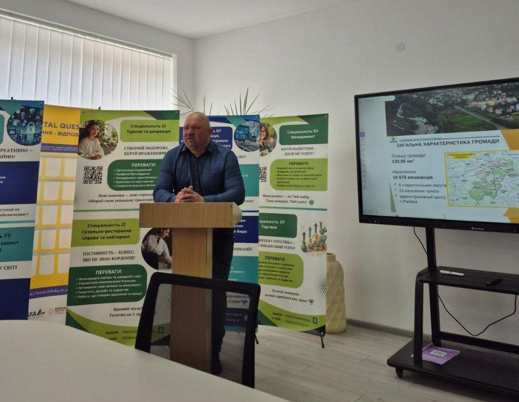 Цікавим для студентів став презентаційний блок про напрямки роботи Ралівської громади. Петро Михайлович розповів про сучасні виклики місцевого самоврядування, формування бюджету громади, участь у міжнародних проєктах, розвиток туристичної та готельно-ресторанної сфери, а також наголосив, що кожен сьогодні може долучитися до розвитку громади та працювати на її благо.